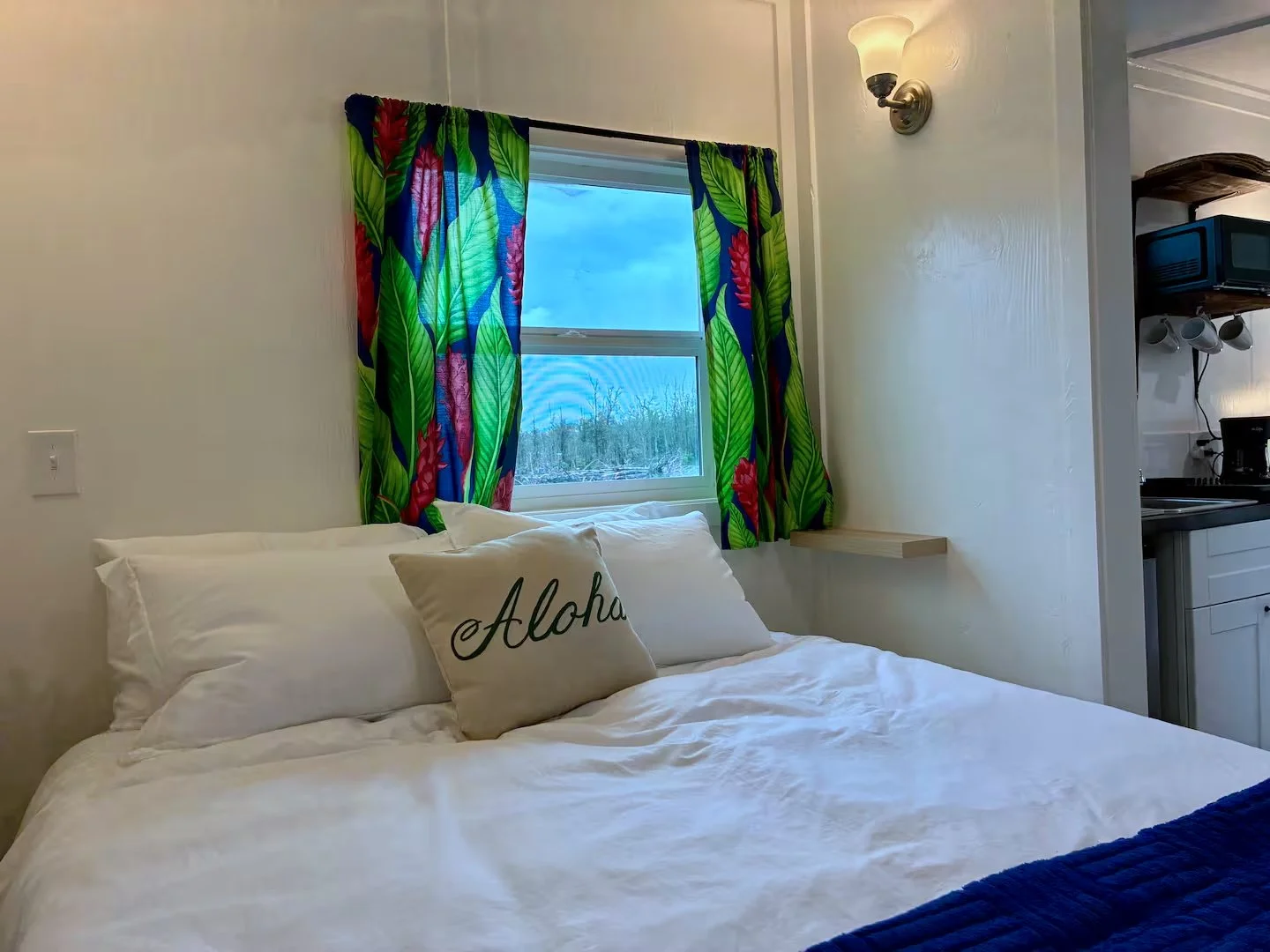 Adventure awaits nearby! Hawaiʻi Volcanoes National Park, where Kīlauea is currently erupting, is a short drive away, offering dozens of hikes and stunning volcanic landscapes. Explore the charming town of Volcano, with its quaint coffee shops, gift shops, and local flavor. Down the road, Punaluʻu Black Sand Beach beckons for a day by the ocean. Whether you’re hiking, sightseeing, or simply unwinding, this tiny home is your perfect home base.