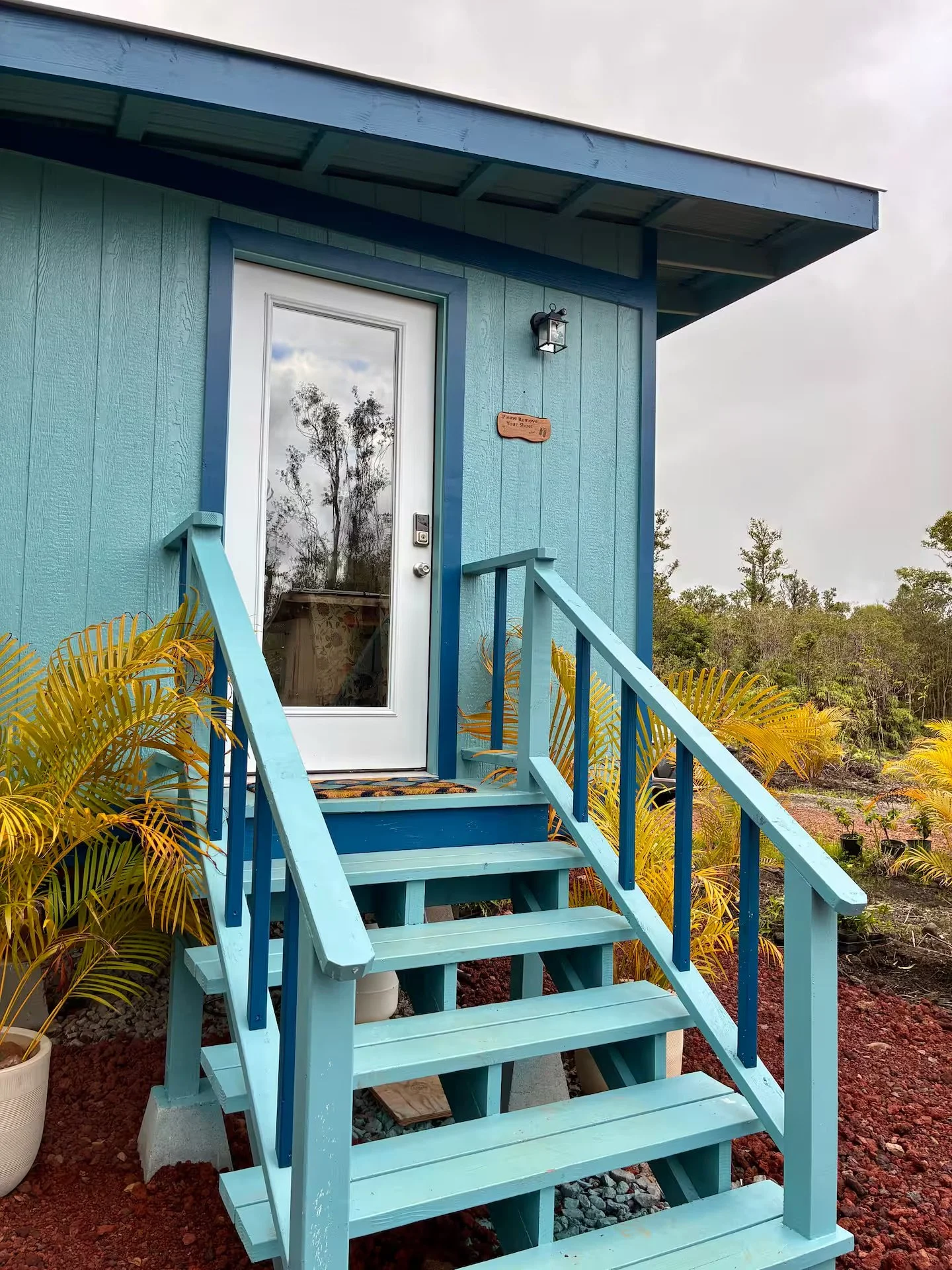 This charming tiny home provides a peaceful escape nestled on a secluded 3-acre property in the heart of Fern Forest, surrounded by towering Hawaiian ʻŌhiʻa trees. Just a few miles off the highway, this rural rainforest haven offers tranquility, modern comforts, and easy access to adventure. No 4WD needed, with paved roads, a gravel driveway, and plenty of parking for all cars.