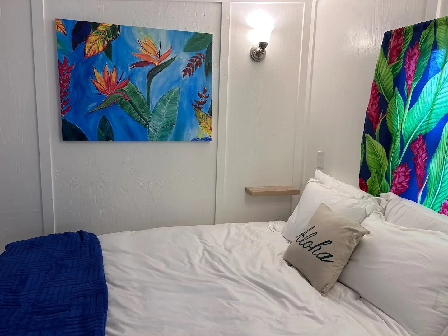 As a special touch, the space is adorned with art by a local artist, reflecting the spirit of the island. Stay connected with fast Starlink Wi-Fi. The property runs on plentiful solar electricity (we don't lack for sun out here!), filtered rainwater, and on-demand hot water, ensuring a comfortable stay.